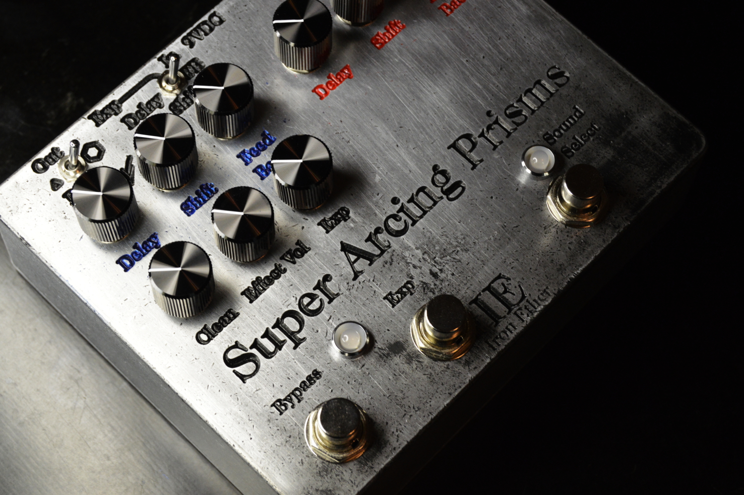 Super Arcing Prisms takes the psychedelic spiraling modulation, frequency shifting and delay effects of the Arcing Prisms and adds instant foot-switch access to four different sounds – kind of like presets, but without losing the WYSIWYG interface style that Iron Ether pedals have always had.